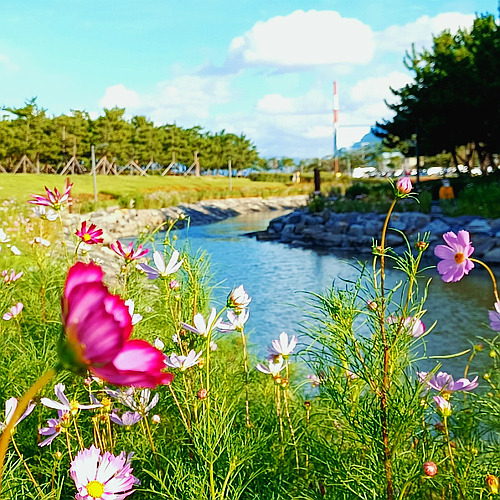 늦여름 들어 찬바람 나며 피기 시작하는 무궁화 한창이고 코스모스 한들거리는 요즘.