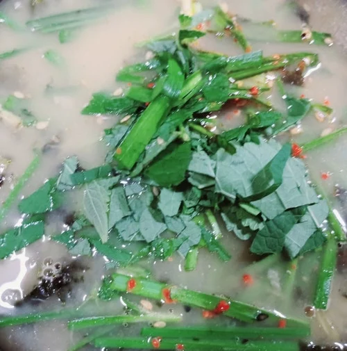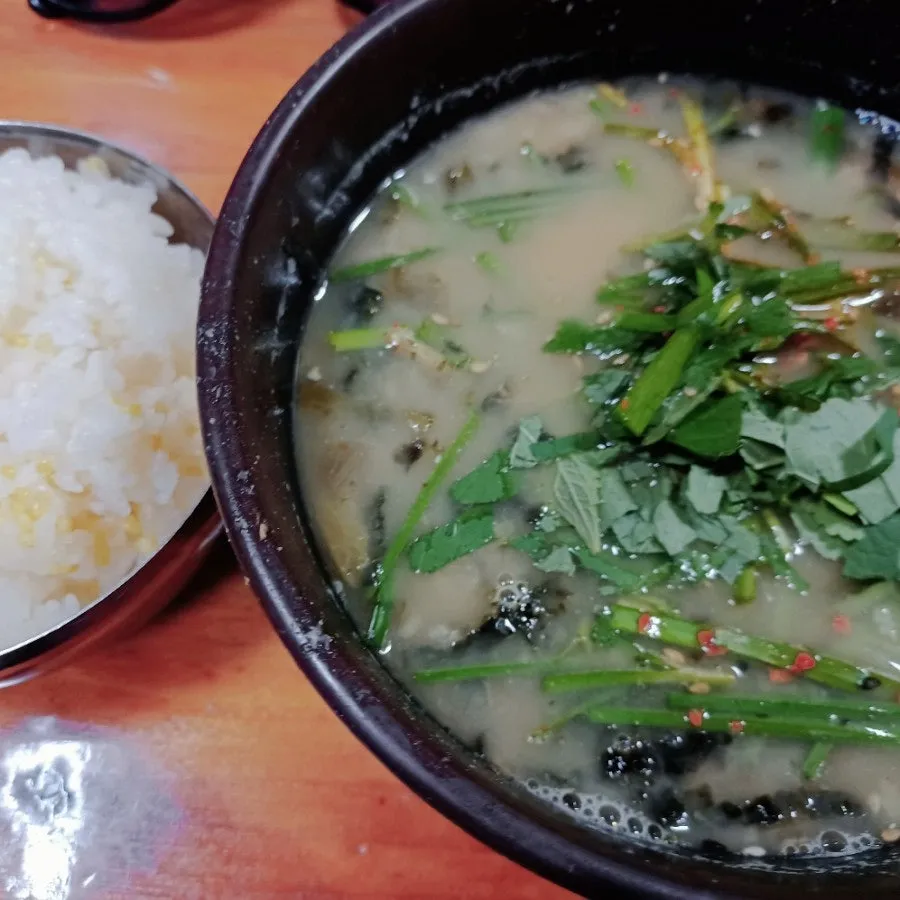뽀얀 시락국에 얹은 방하 잎과 산초가루 향이 은은한 풍미를 더해 주었다.