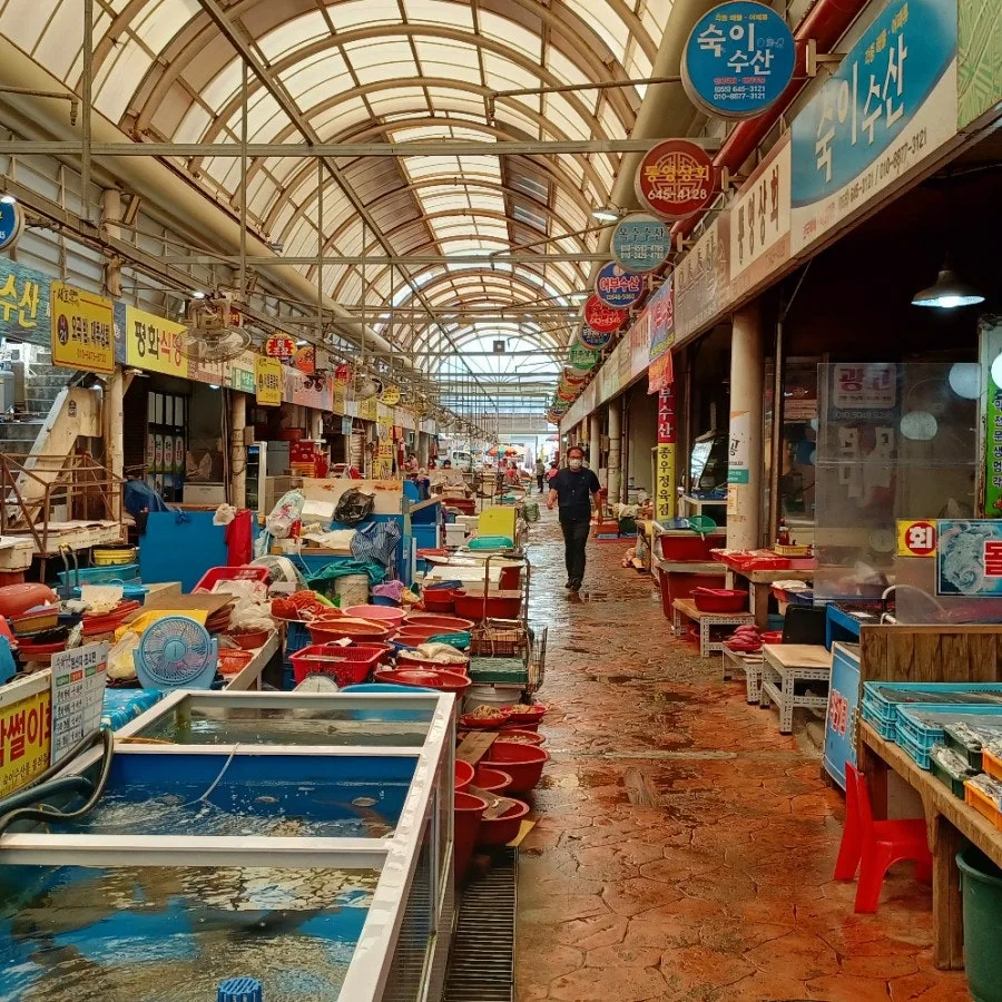 일제에 의해 동양 최초로 만든 해저 터널 앞을 지나 통영 여객터미널 곁에 있는 전통시장으로 갔다.