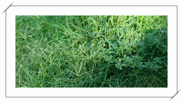 왕바랭이, 쐐기풀, 괭이밥, 여뀌, 민들레, 방동사니, 쇠비름, 피, 독새기풀, 별꽃, 명아주, 강아지풀, 토끼풀, 냉이, 망초 등등.