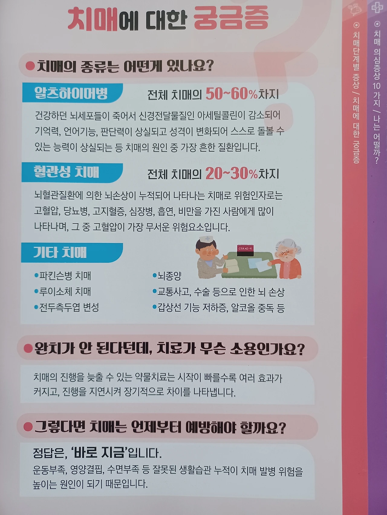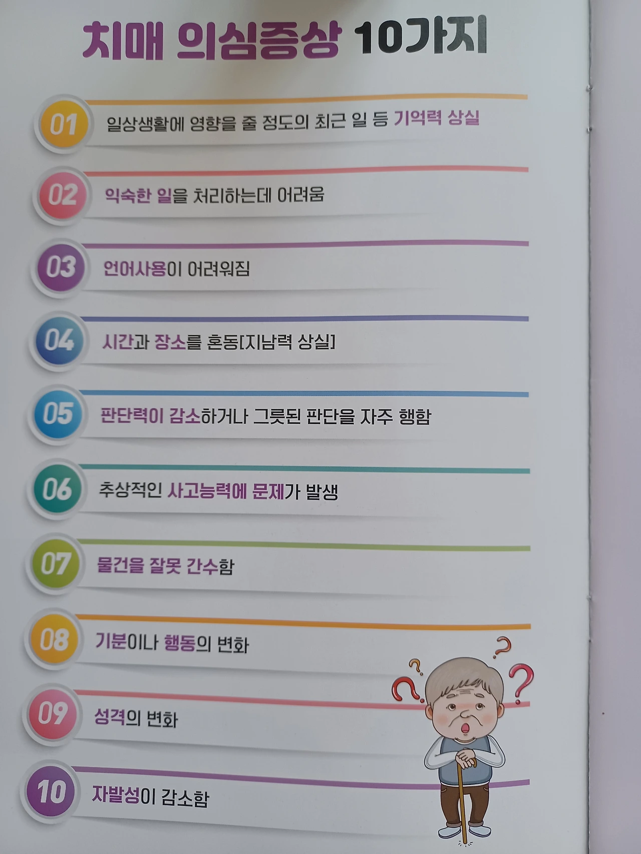 재작년 보건소에서 처음으로 치매검사를 권하는 연락을 받고는 뭘 어찌하는 건가, 구경 삼아 가봤다.