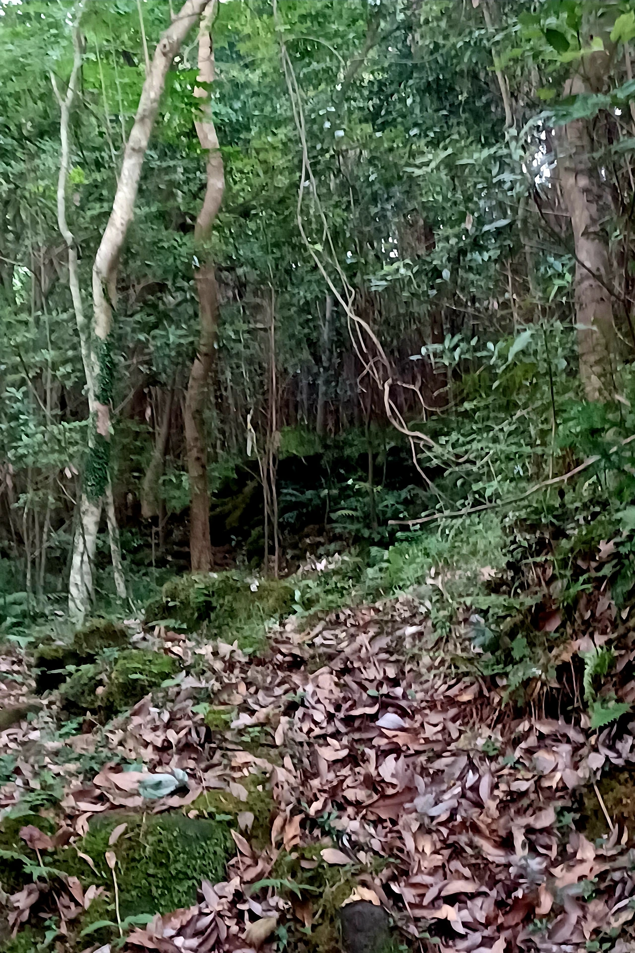 상록수인 동백나무 식나무 종가시나무 와 누린장나무를 비롯 양애 군락지, 숯가마터도 보였다.