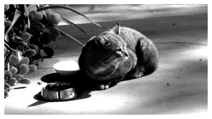 어젯밤엔 얘들이 먹다 남긴 밥그릇 주변에 낯선 회색고양이가 어슬렁거렸다.