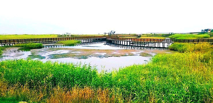 모래사장, 갈대숲길, 갯벌로 이어지는 생태탐방로 데크길을 따라 걷다 보니 의외로 펄 속에 보금자리를 튼 게가 지천으로 버글거렸다.