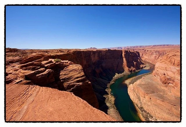 글렌캐년 댐에서 협곡을 따라 내려온 청녹의 강줄기는 기나긴 비단 스카프를 풀어놓은 거 같다,