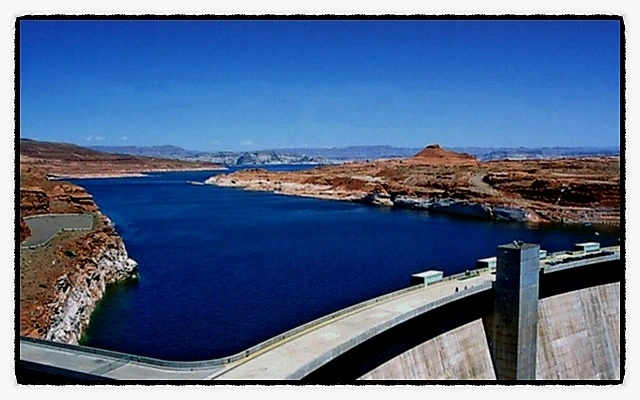 파웰호수를 끌어안고서야 겨우 위용을 되찾은 글렌캐년 댐에 서니 바람의 횡포가 자심하다.
