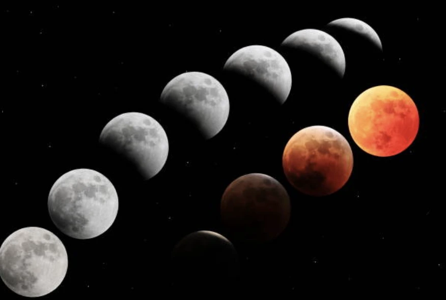 월식의 진행 과정은 5단계로 나뉜다.