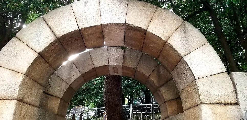 수영성 남문 입구를 장식한 이중 구조의 화강암 홍예문