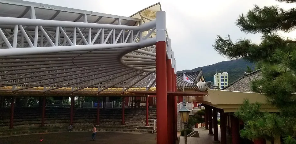 전에는 지붕 덮개가 없었기에 여기 서서 휘둘러 보면 짙푸른 금련산과 광안리 바다 및 수영강이 한눈에 들어왔다