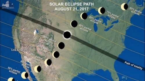 오리건에 이어 아이다호, 와이오밍, 네브래스카 등 14개 주를 횡단해 오전 11시 46분 사우스캐롤라이나 찰스턴에서 막을 내린다는 개기일식이다.