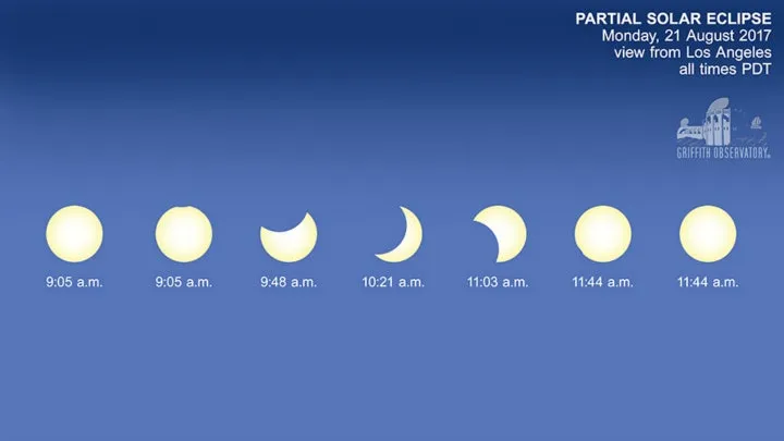 LA에서 개기일식(Maximum Eclipse)이 관측되는 시각은 21일 오전 10시 21분으로 나와 있다.