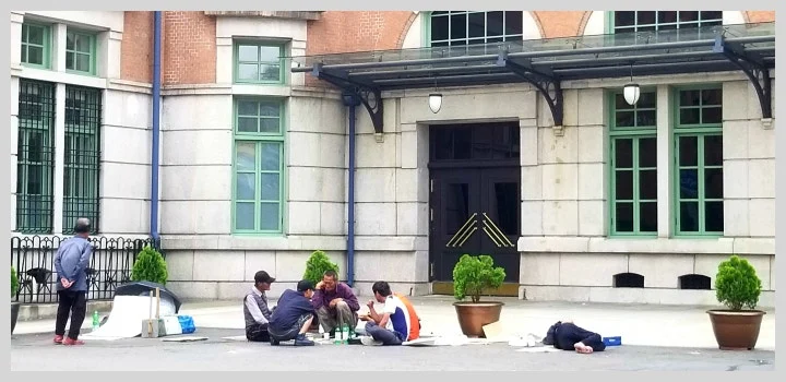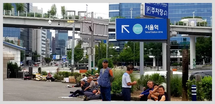옛 역사 주변엔 시위대 천막과 현수막이 어지러웠고, 길가엔 홈리스들이 술판 벌이거나 아무렇게나 누운 채 거리잠에 취해 있었다.