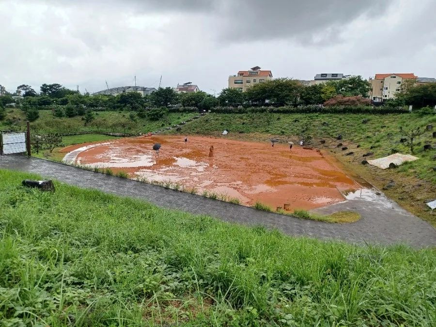 서귀포 신시가지 월드컵 광장을 나설 즈음, 시작부터 대단한 폭우가 쏟아졌다.