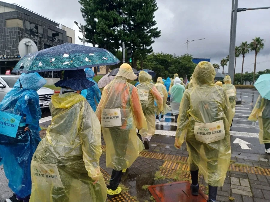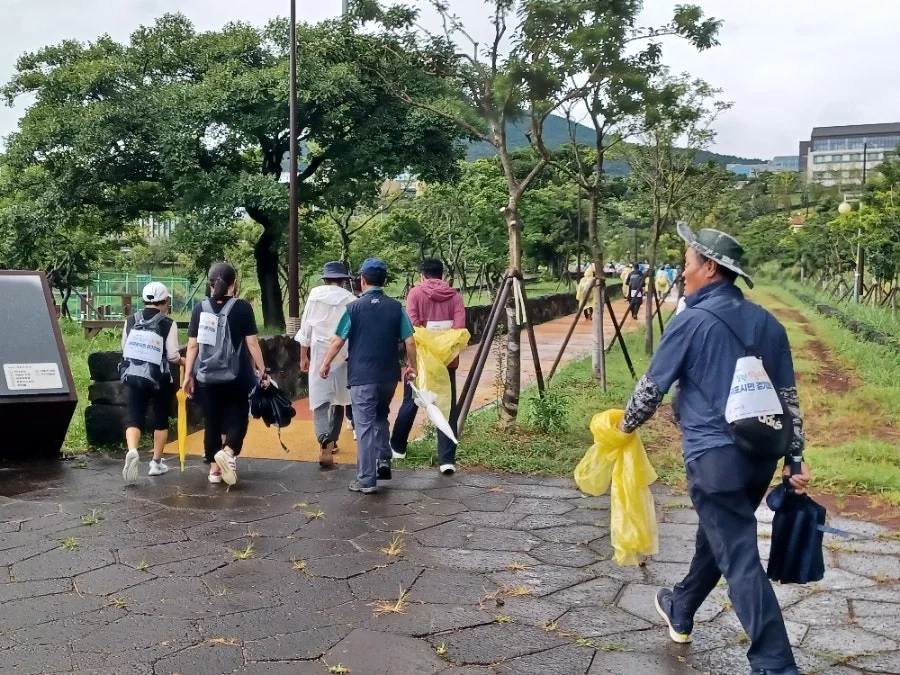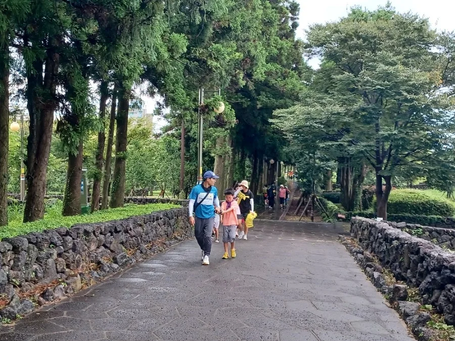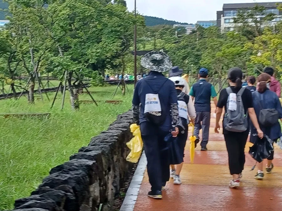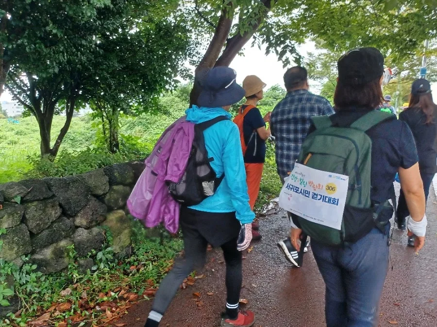 캠페인 내용대로 오전 8시 30분부터 서귀포 숨골공원을 거쳐 혁신도시공원을 따라 5킬로에 이르는 구간을 걷는 '건강 걷기'에 참여했다.