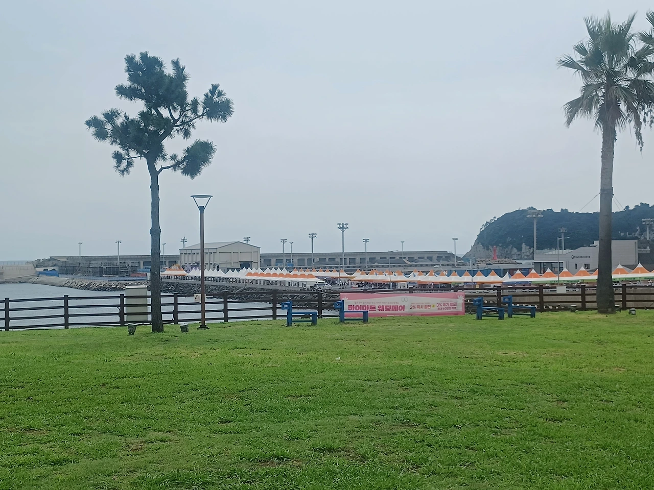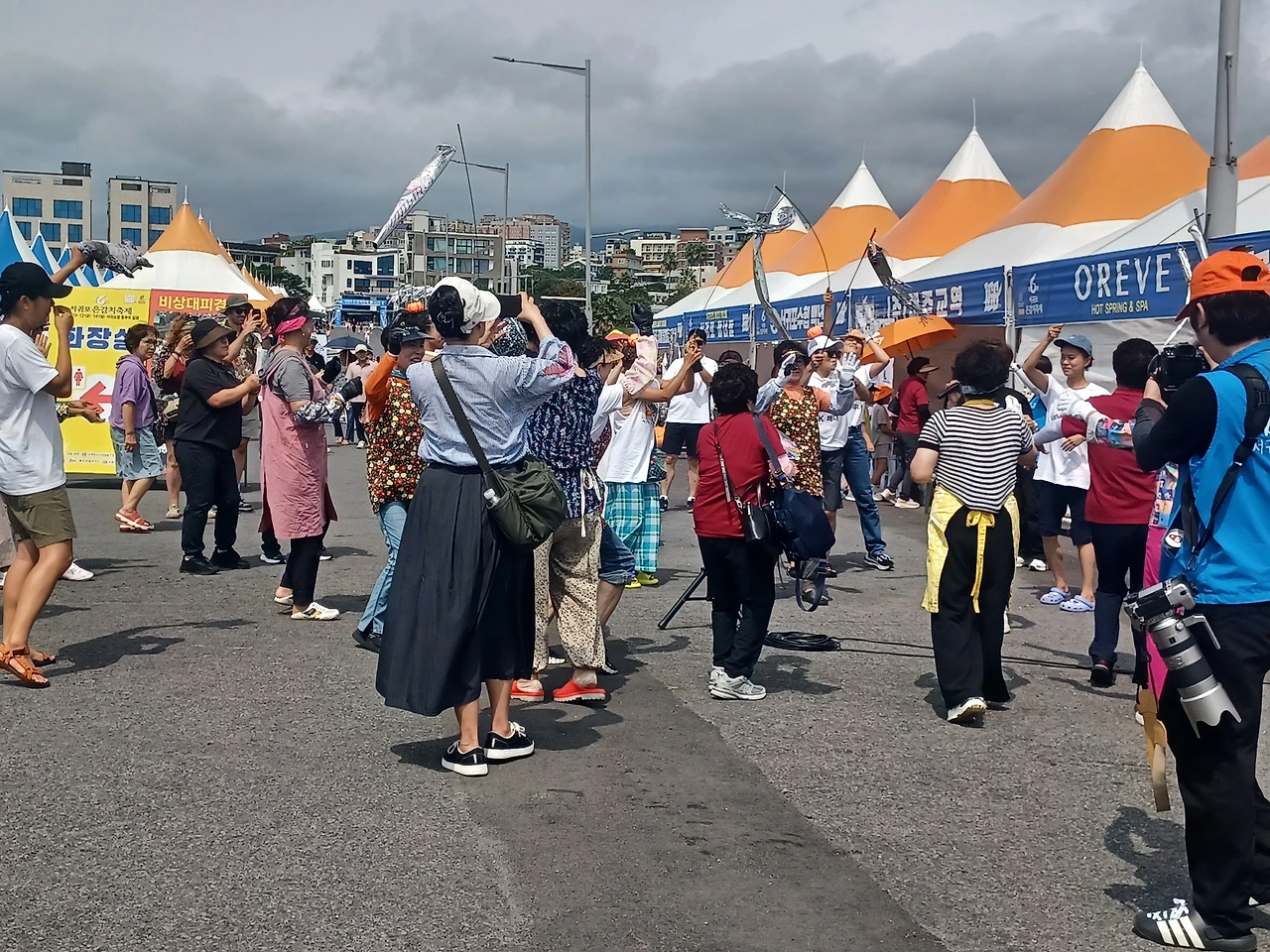 토요일인 어제는 뇌성과 폭우 요란해 바닷가 축제장 분위기는 을씨년스러웠을 터.
