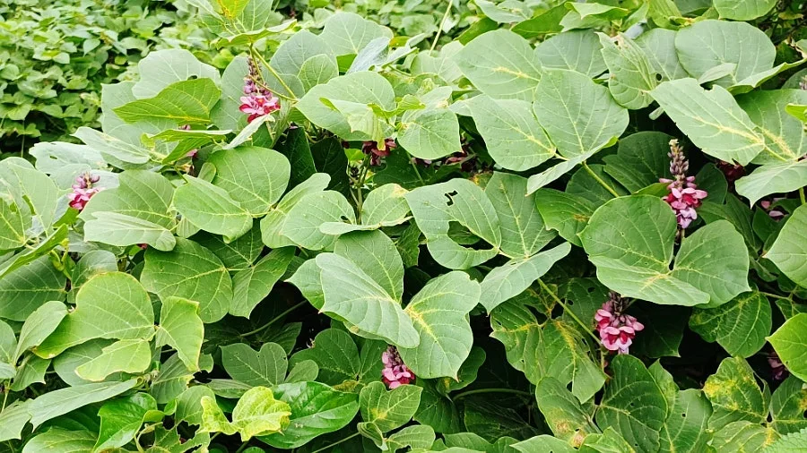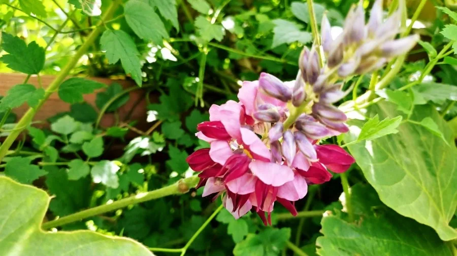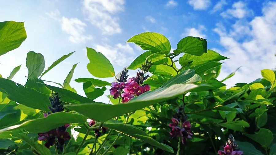 한껏 무성한 칡덩굴에 피어난 자주보랏빛 칡꽃에서다.