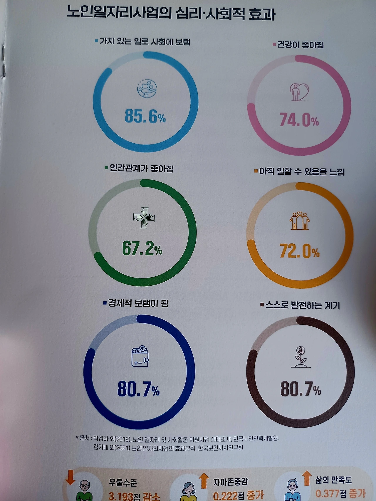 오늘의 대한민국을 일궈온 주역인 시니어들의 지속적인 외적활동 참여와 사회적 관계망 확장과 폭넓은 건강증진을 위해서 노인일자리 사업은 좀 더 확장되어야 한다고 본다.