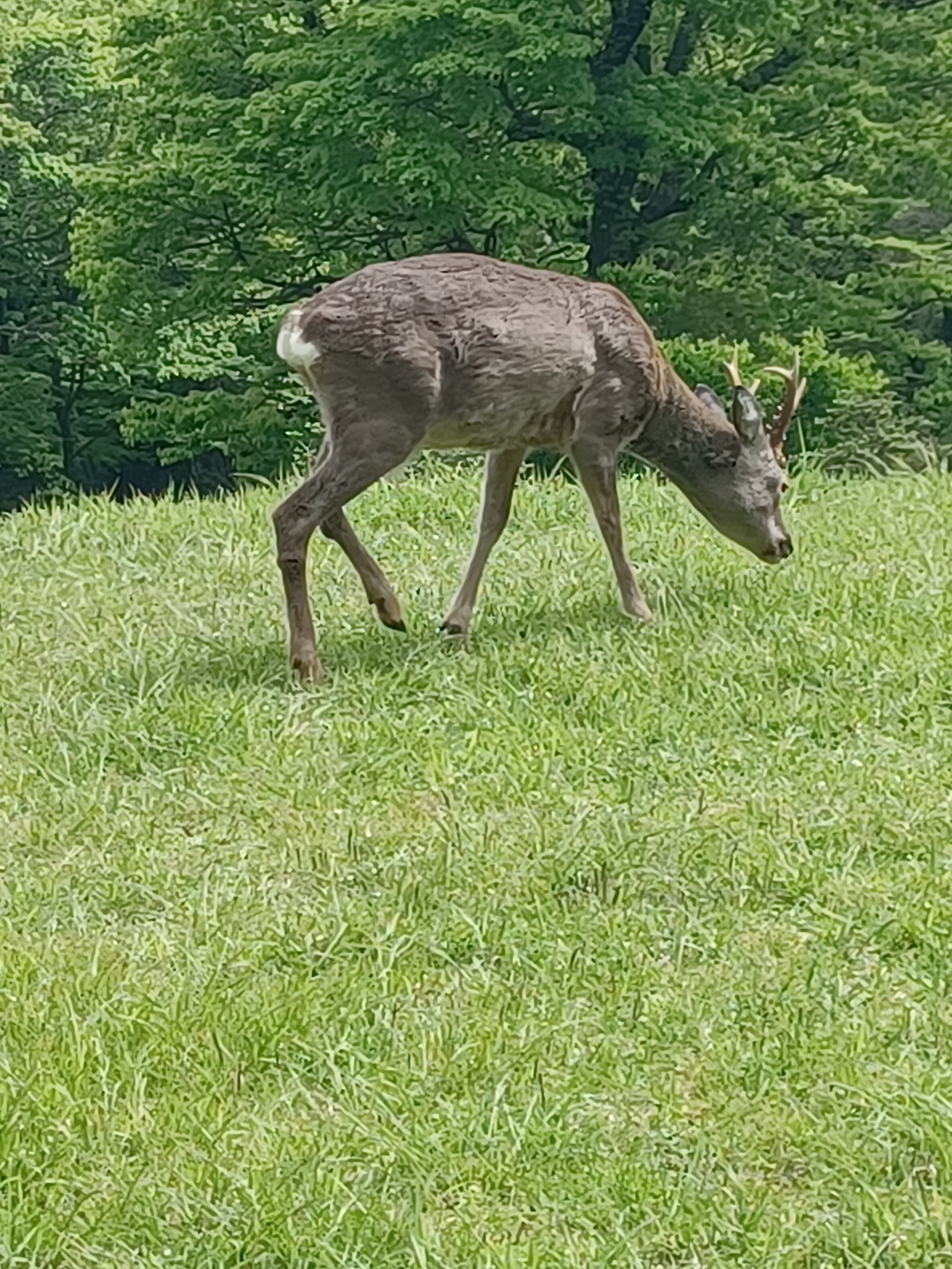 올라갈 때 놓쳤던 온갖 자연 풍광들, 훤칠한 삼나무며 뿔이 멋진 노루며 엉겅퀴꽃 마음껏 누려가면서 여유롭게 걸었다.