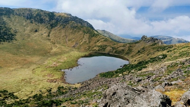 병풍처럼 둘러싼 암벽 자애로우면서도 위엄찼고 그 아래 백록 내려와 물 마시던 굼부리는 병아리마냥 작아 귀여웠다.