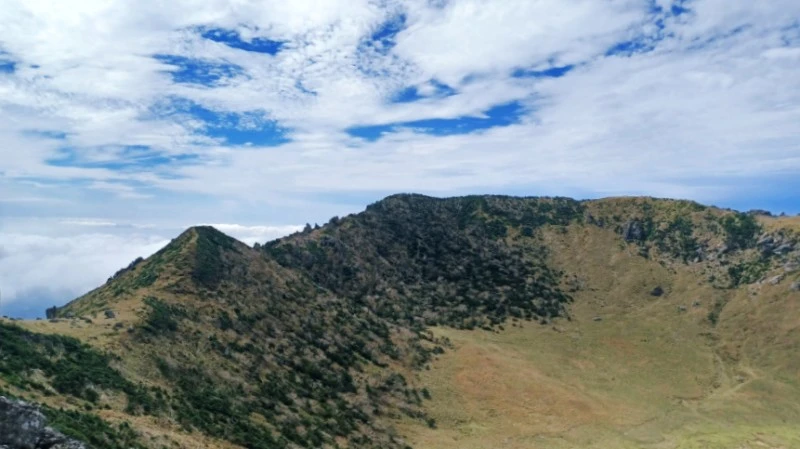 온데 잔뜩 양털 흩어놓은 듯한 구름으로 하늘 흐리지만 혹시 아나? 한라산 기상도는 수시로 변하니까.