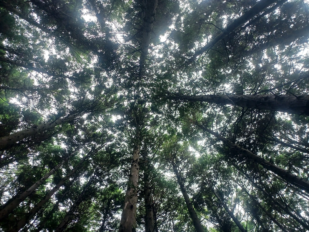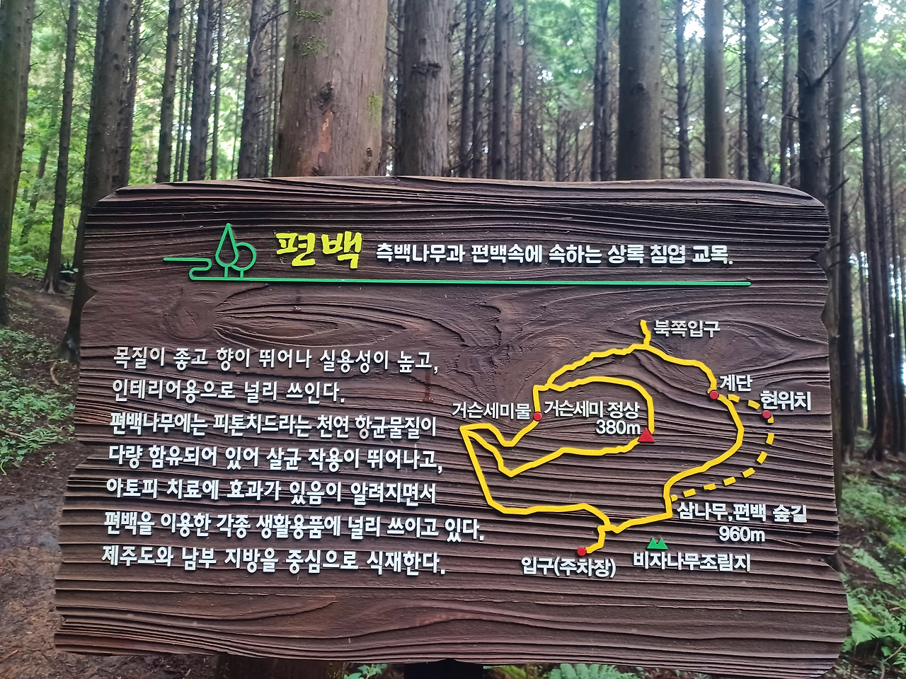 조림지인 비자림에 이어 쭉쭉 뻗은 편백나무가 위엄차게 솟아 사열을 하듯 받들어 총! 자세다.