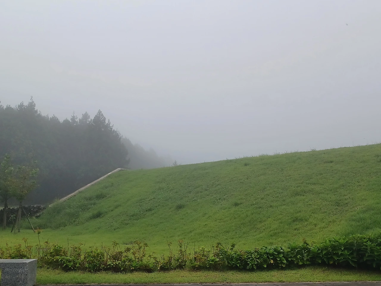 말굽형 굼부리가 패어 있으며 완만하게 이어지는 두 개의 등성으로 이루어졌다니 시간도 제법 걸리겠고 비도 염려스러웠다