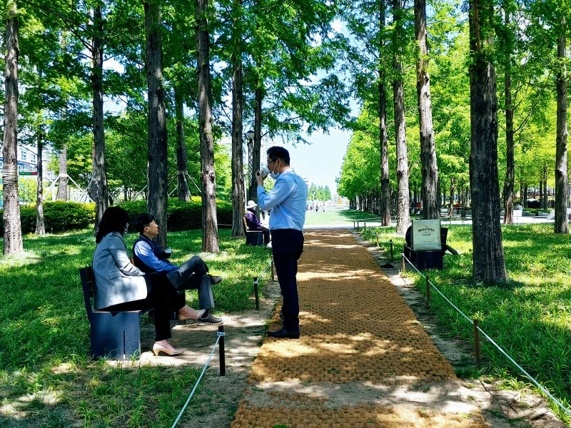 하늘빛 쾌청한 날, 메타세쿼이아 신록 푸른 로터리에서 색다른 풍경과 눈이 마주쳤다.