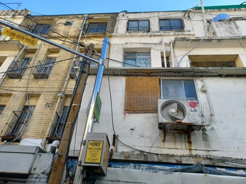 노후 건물이라 벽체 군데군데 균열, 방치된 누수 자국 등 지저분하고 어지러워 바라만 봐도 심란스럽다.