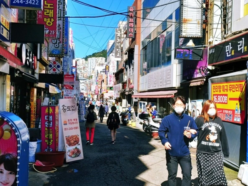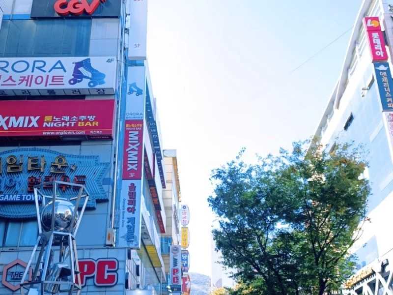 비프(BIFF) 광장에서 부평 시장으로 뻗어나갈 아리랑 거리를 마주 보는 CGV 뒤편 주차빌딩 골목이다.