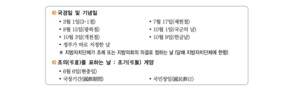 대한민국 국기법 제8조에 국기의 게양일이 명기되어 있잖느냐.