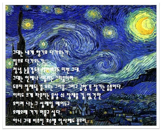 고요한 시각 푸른빛 되어 내 창가를 서성이는 그대.