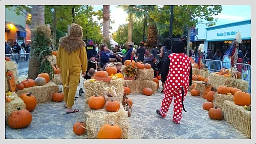 등황색 크고 작은 호박으로 꾸민 가로 여기저기엔 온몸에 하얀 붕대를 감은 미라 같은 사람이 걸어 다니고 유령이나 해골, 마녀는 빠질 수 없는 메뉴로 등장했구요.