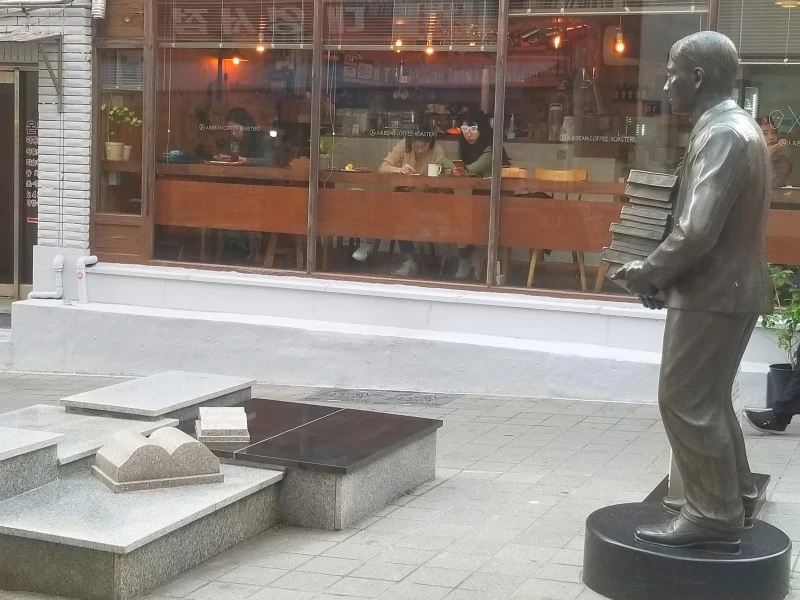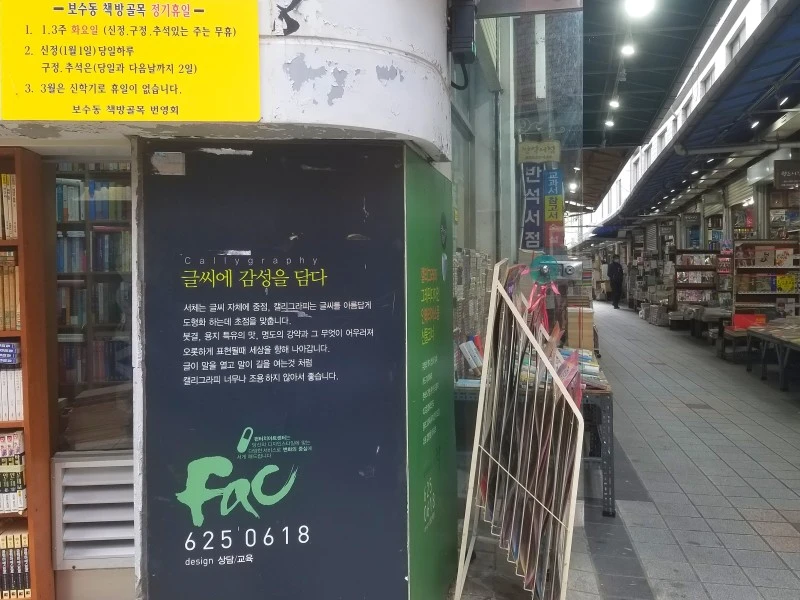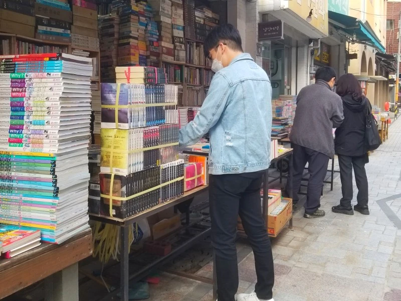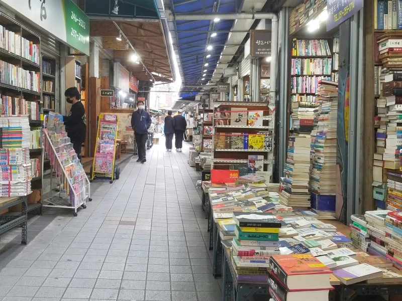 책방 골목이 한창 인기를 누릴 때는 70여 가게가 번창했으나 호황기가 지난 이즈음은 겨우 30여 점포만이 명맥을 유지하고 있다네.