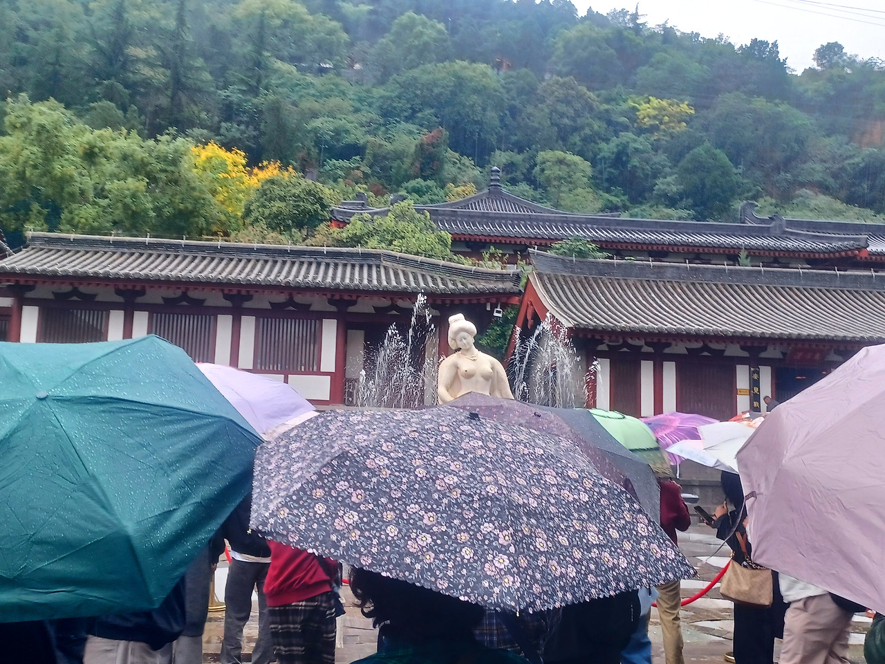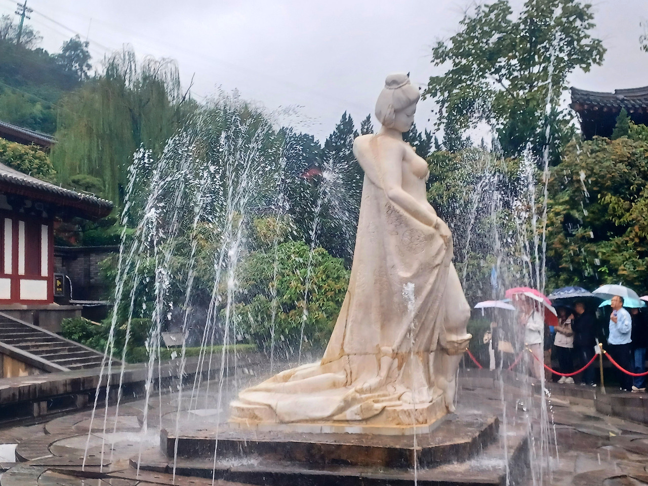 화청지에서는 양귀비를 현대식 미녀로 재해석해 갸름한 얼굴에 날씬한 나신으로 표현돼 있으나 대만에서 선보인 양귀비 상은 매우 퉁실한 데다 노골적으로 육감적인 모습이더라고(실제 역시 그러했다고).