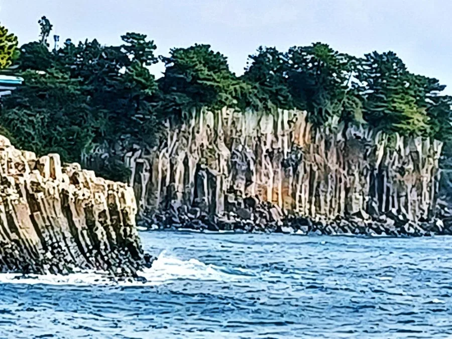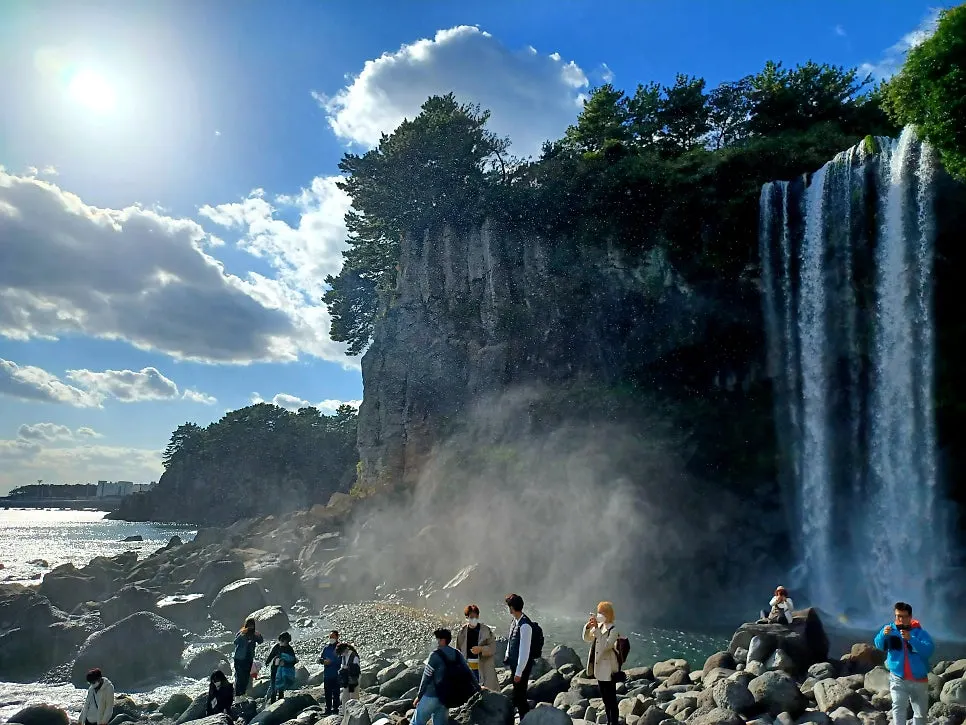단숨에 바다로 직진해 내리꽂는 정방폭포.
