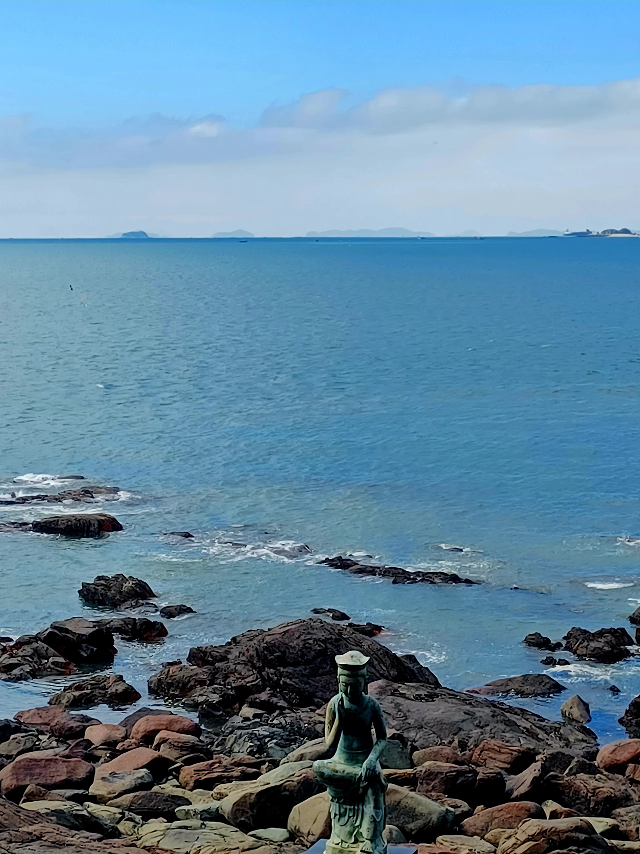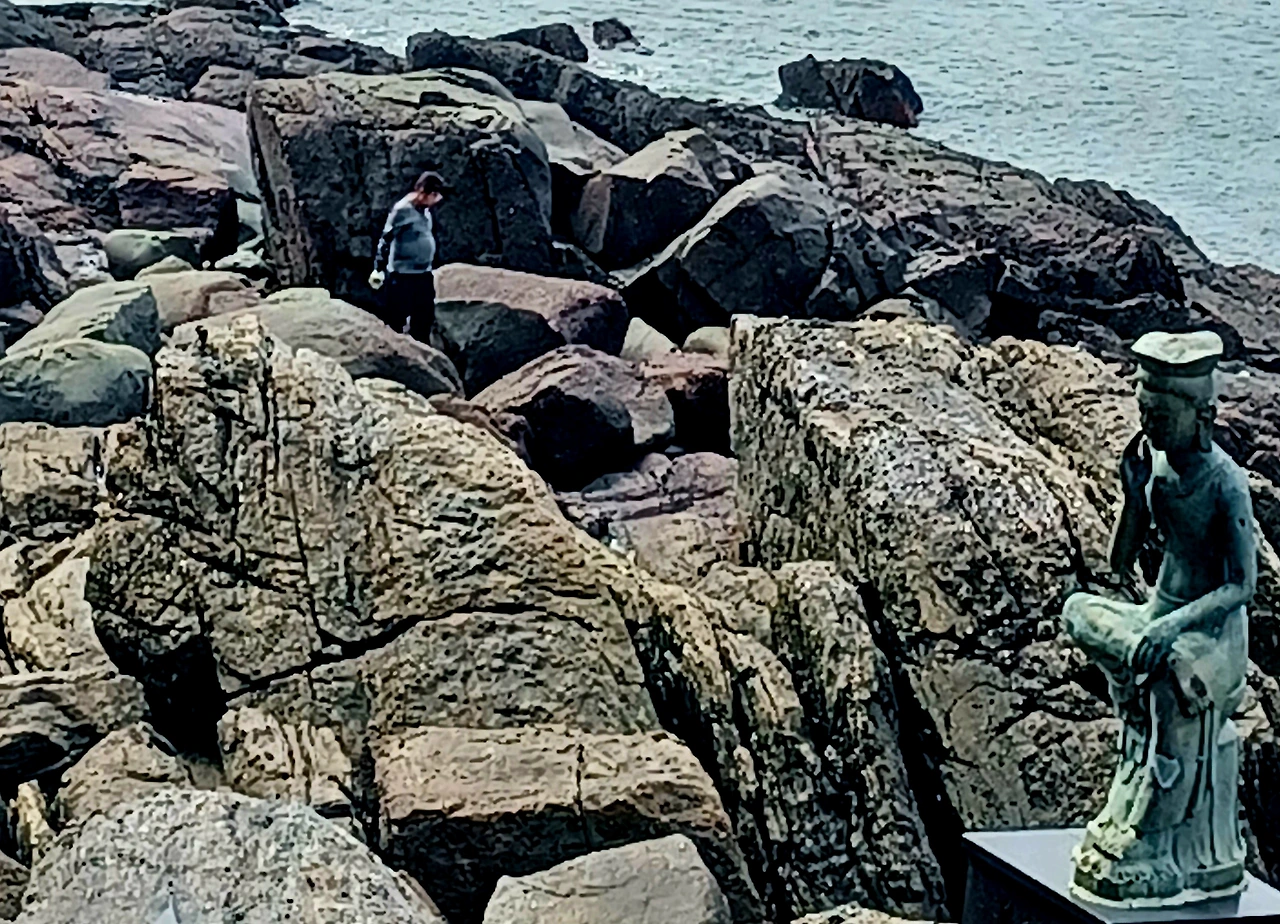 잔물결조차 일지 않는 평화로운 바다가 드넓게 펼쳐진 한 녘의 죽도, 건너편 수평선에 크고 작은 섬들이 얌전히 엎드려 있었다.