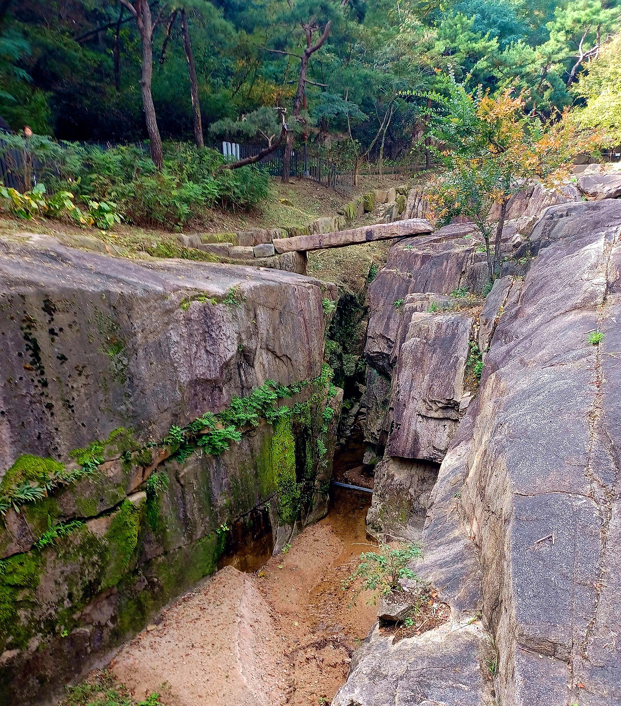 돌 폭 70cm 두께 35cm, 길이 3.7미터의 장대석은 진경산수화의 대가인 겸재 그림처럼 다시금 정선의 '수성동 계곡' 그림대로 암반 사이 계곡 위에 걸리게 됐다.