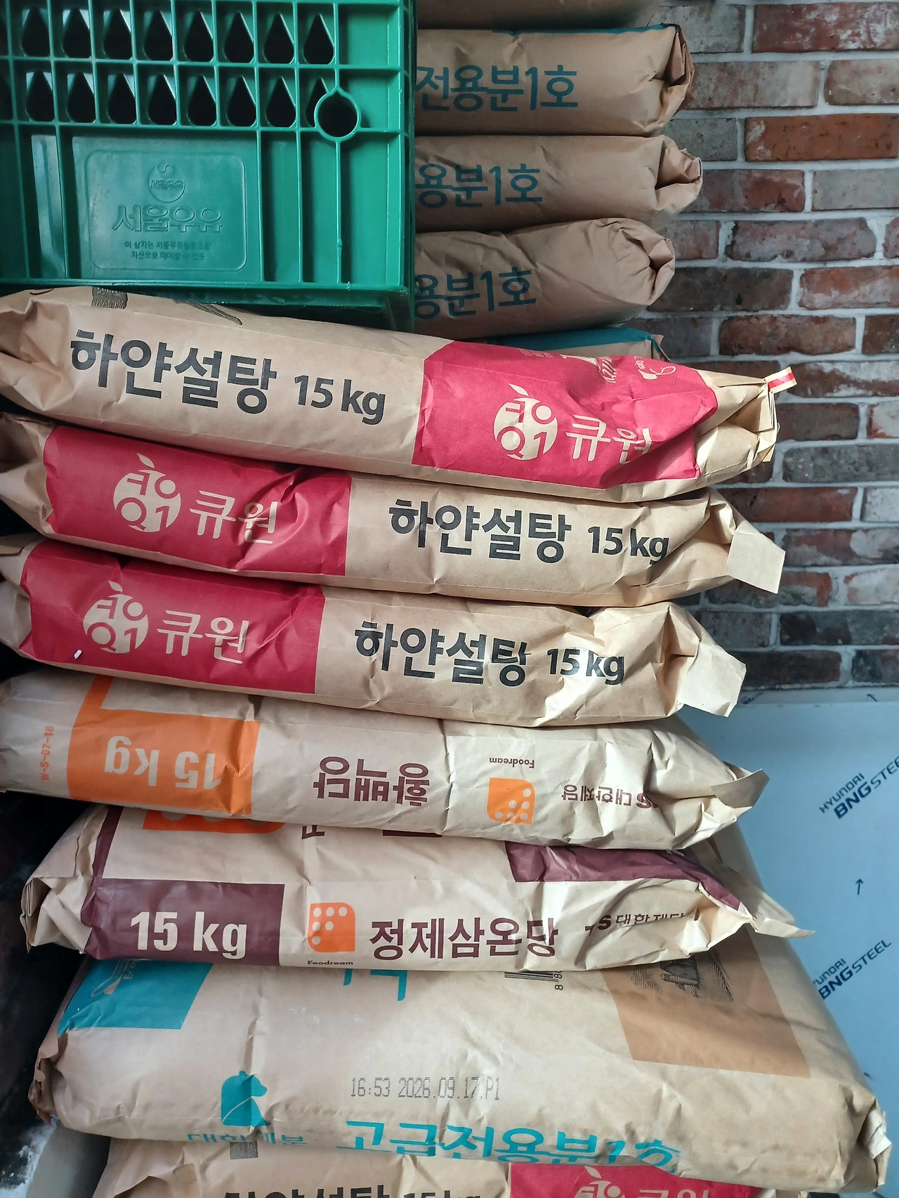 입구에 밀가루와 설탕가루 부대가 높직이 쌓여있는 걸로 봐서도 꽤 이름 알려진 베이커리인 듯.