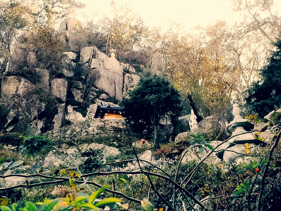 금정산 정상 숲 그늘에 깃든 어느 수행승 홀로 끌질 기도 삼아 했음에 자못 숙연해지는 마음.