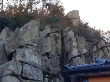모롱이길 돌자 압도하는 위용으로 병풍처럼 서있는 바위 군(群)이 먼저 눈에 들었다.