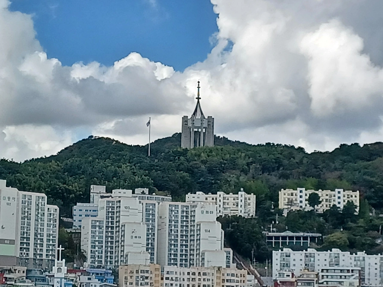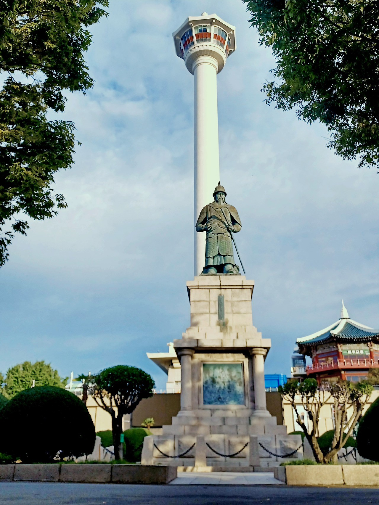 용두산 꼭대기 전망탑과 꽃시계와 이순신 장군 동상은 여전스레 자리를 지켰다.