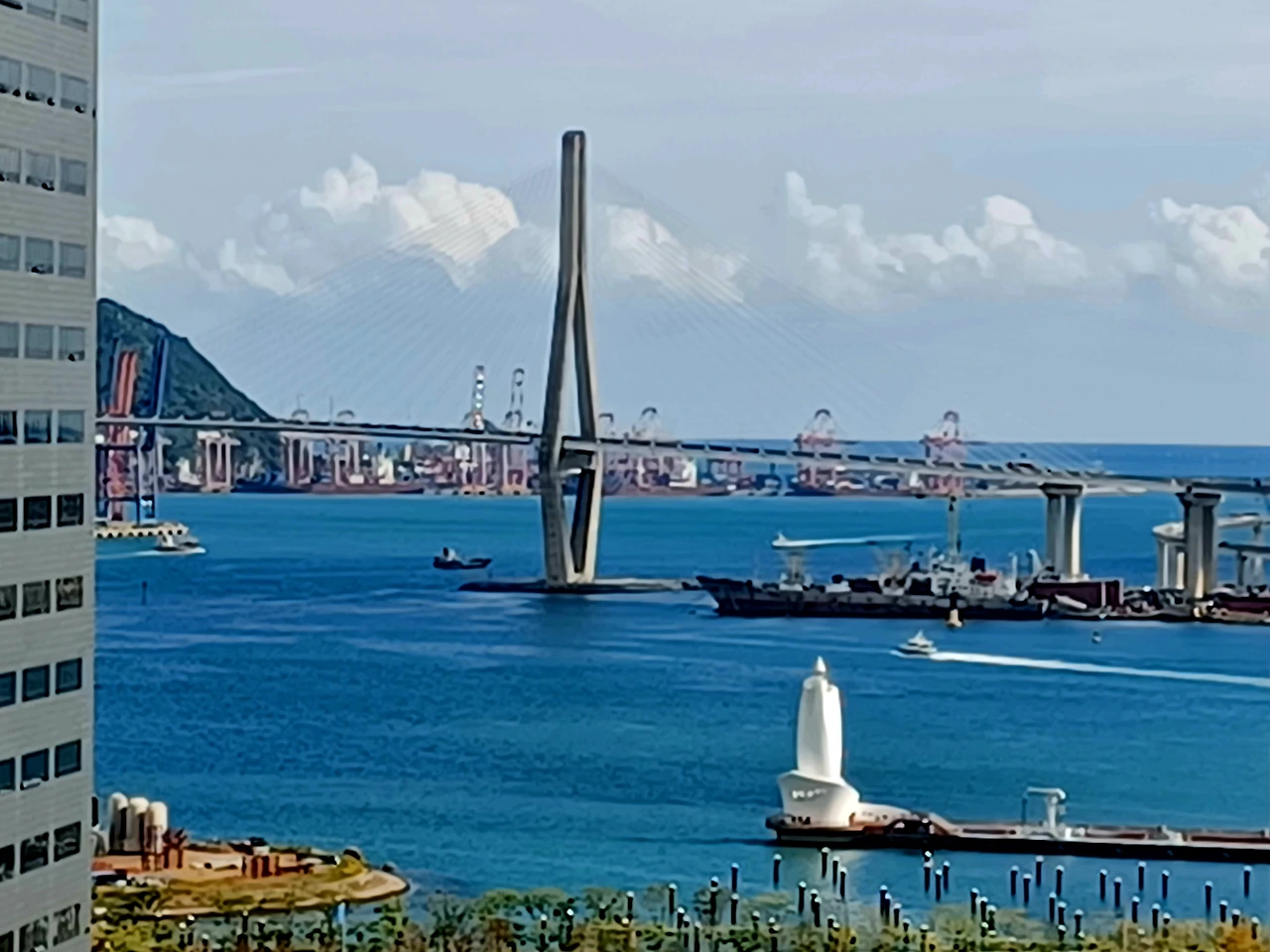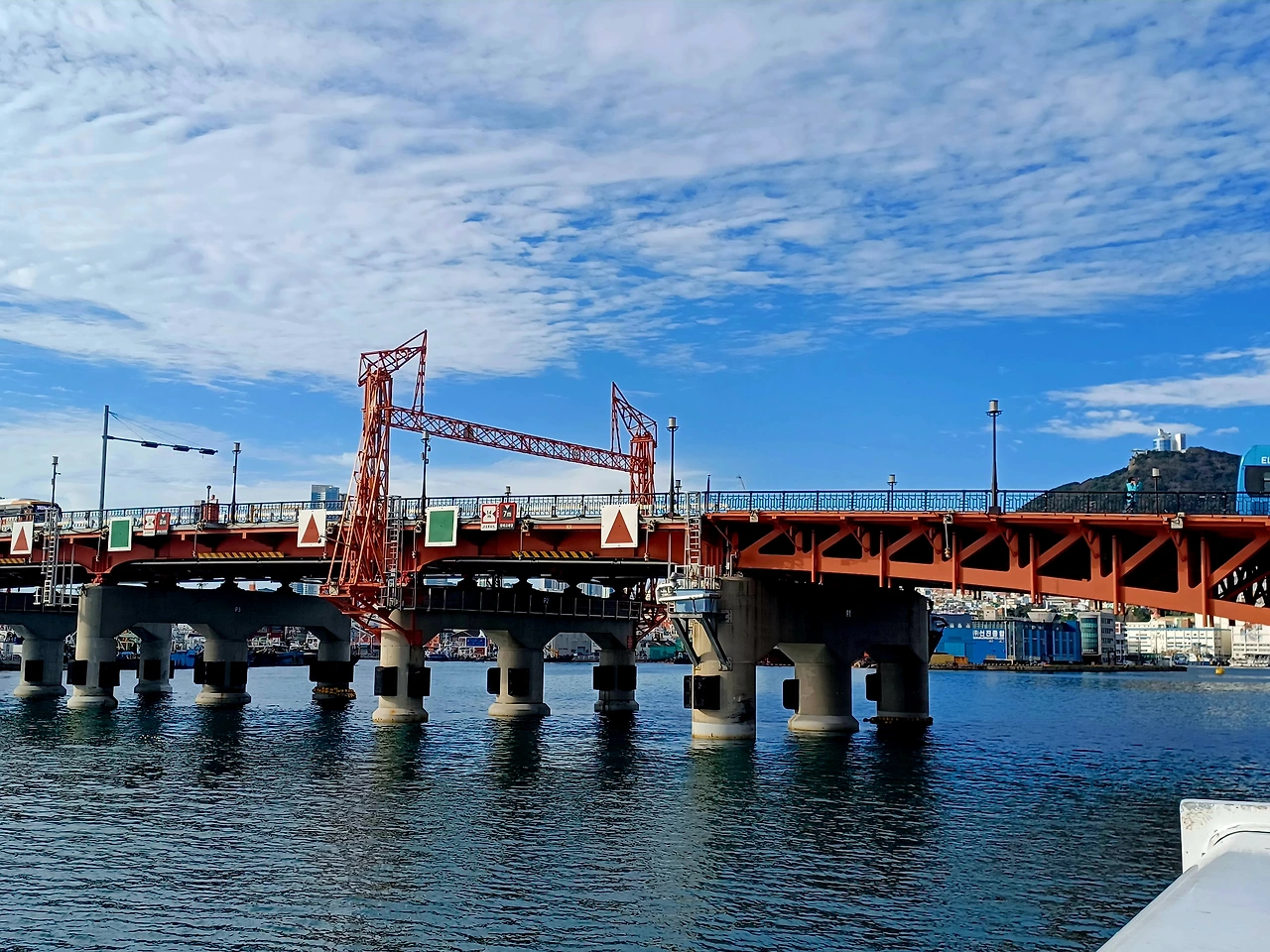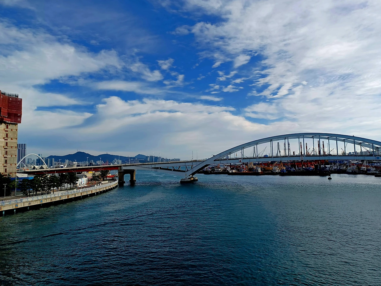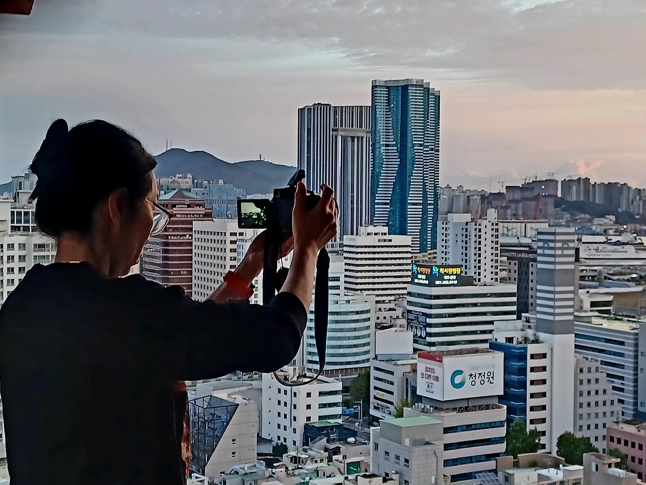 동창을 열자 고층건물 사이, 부산 앞바다 대교 위로 해가 솟아오르고 있었다.