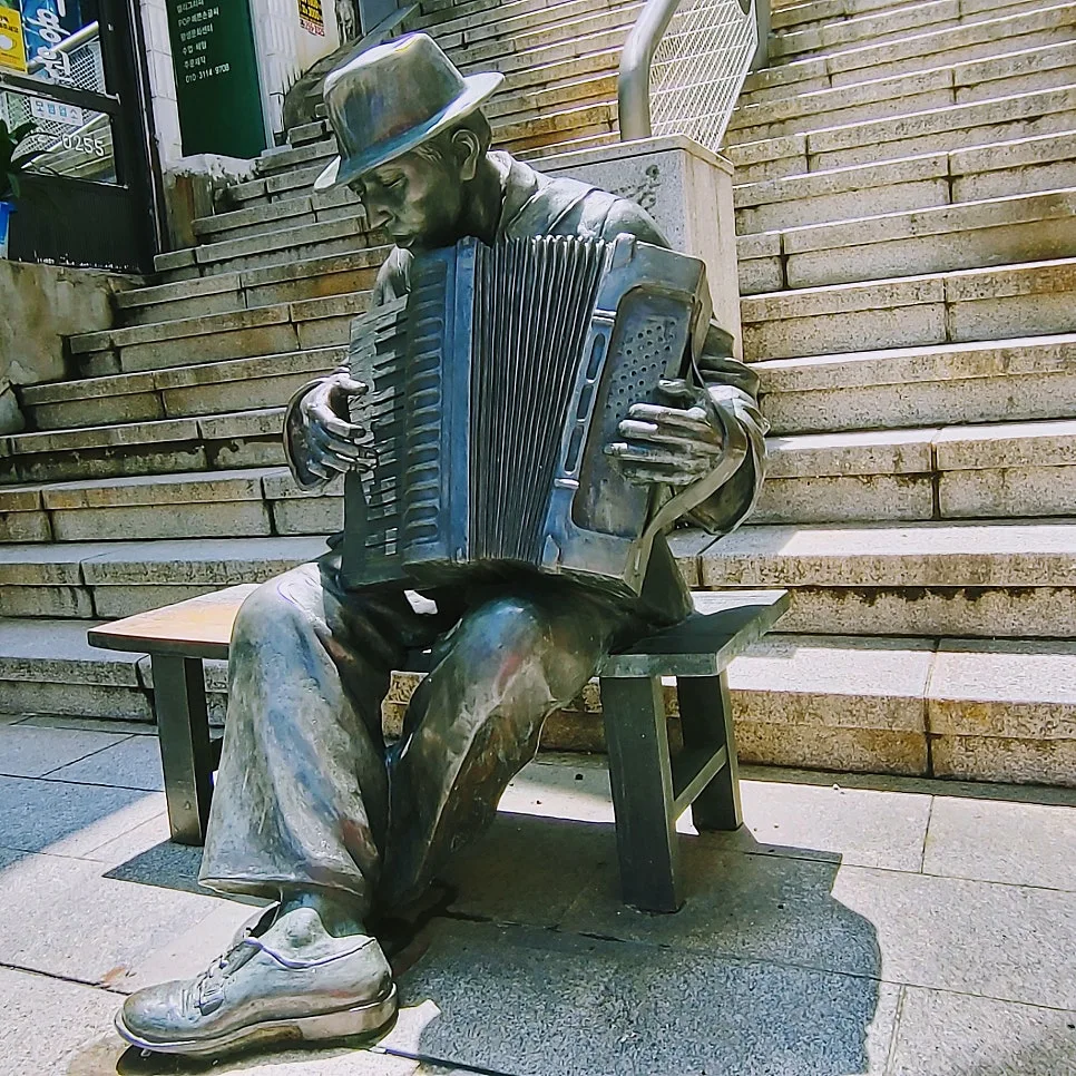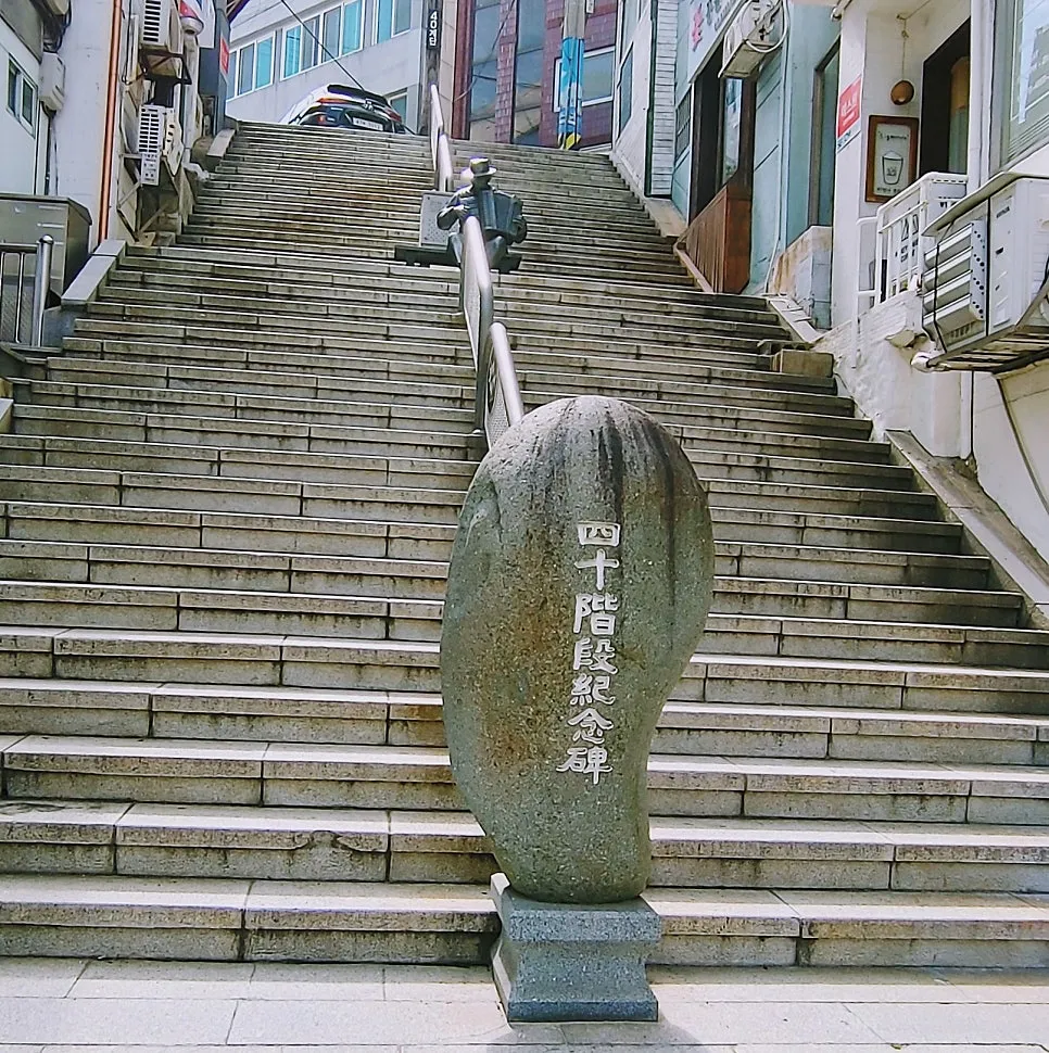 가다가 그 유명한 사십 계단도 지나고 50년대 풍물도 스친 다음 출판골목 거쳐 용두산 올라가는 동쪽 입구에 이르렀다.