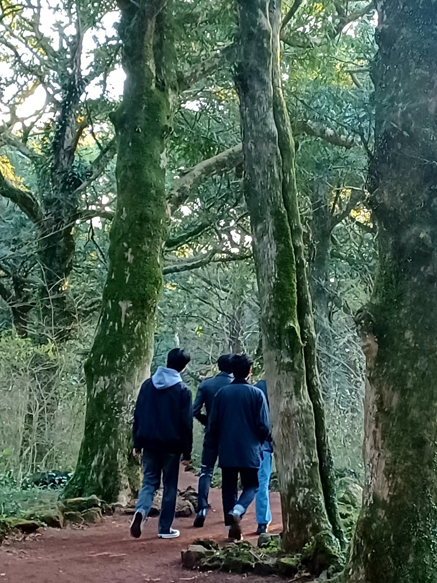 그저 또 하나의 자연물 되어 비자숲에 흡수되듯 녹아든 자신.