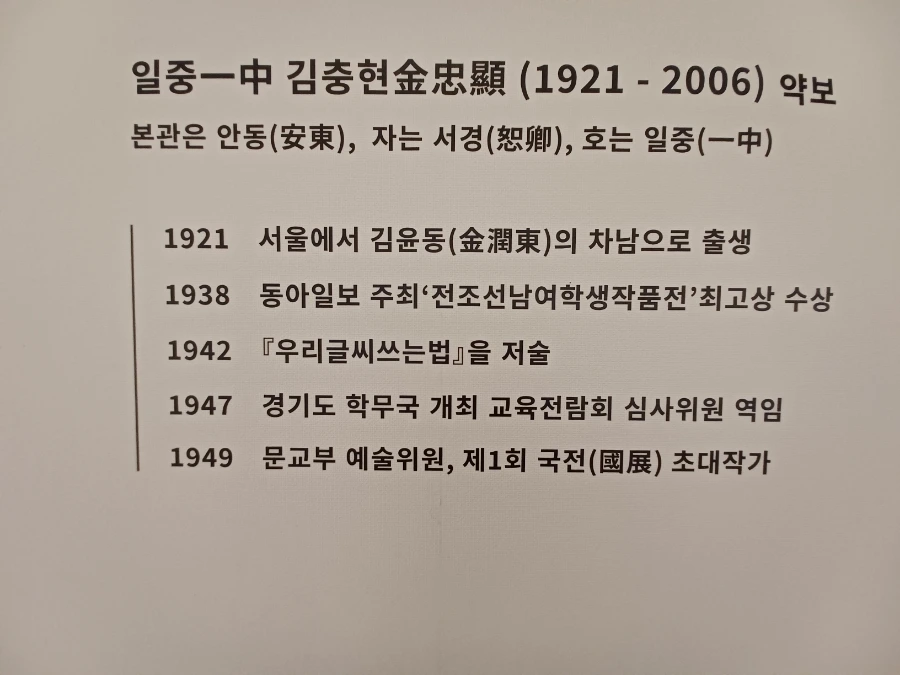 일중 선생은 근현대서예가들 중 한글과 한문서예에 두루 정통했던 서예가다.