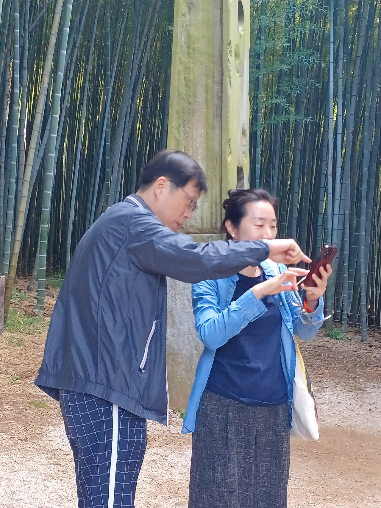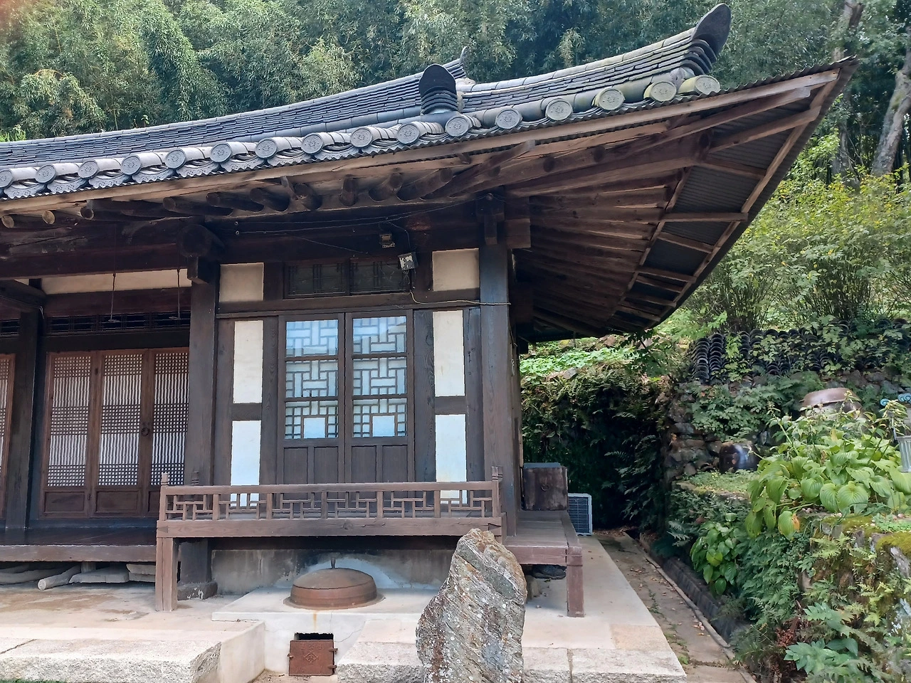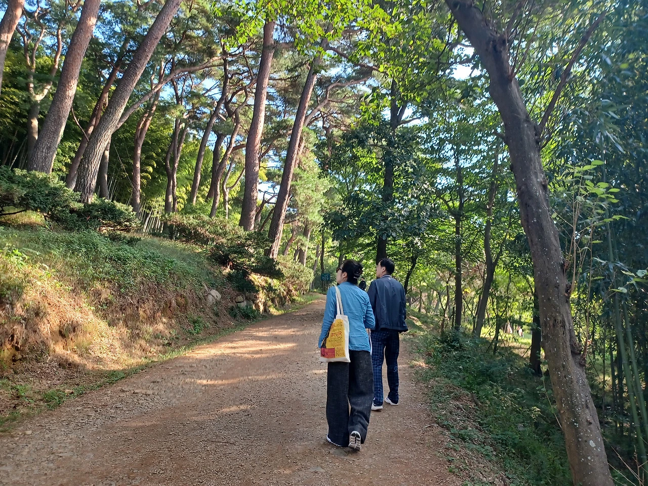 천천히 걷고자 왔으므로 잡목 어우러진 언덕길 휘돌아 곧장 맹종죽 대숲길로 들어서 굿터라 불리는 영화촬영지에서 잠시 노닐었다.