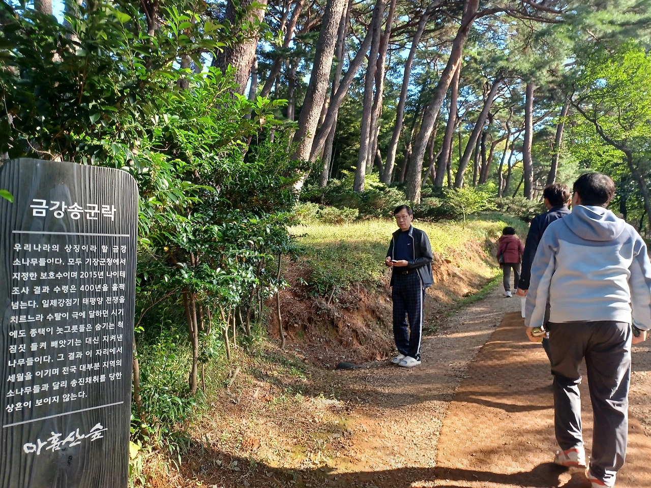 다음에 만난 귀물은 금강소나무, 궁궐을 지을 때 쓰이는 목재라 알려진 적송 군락지다.