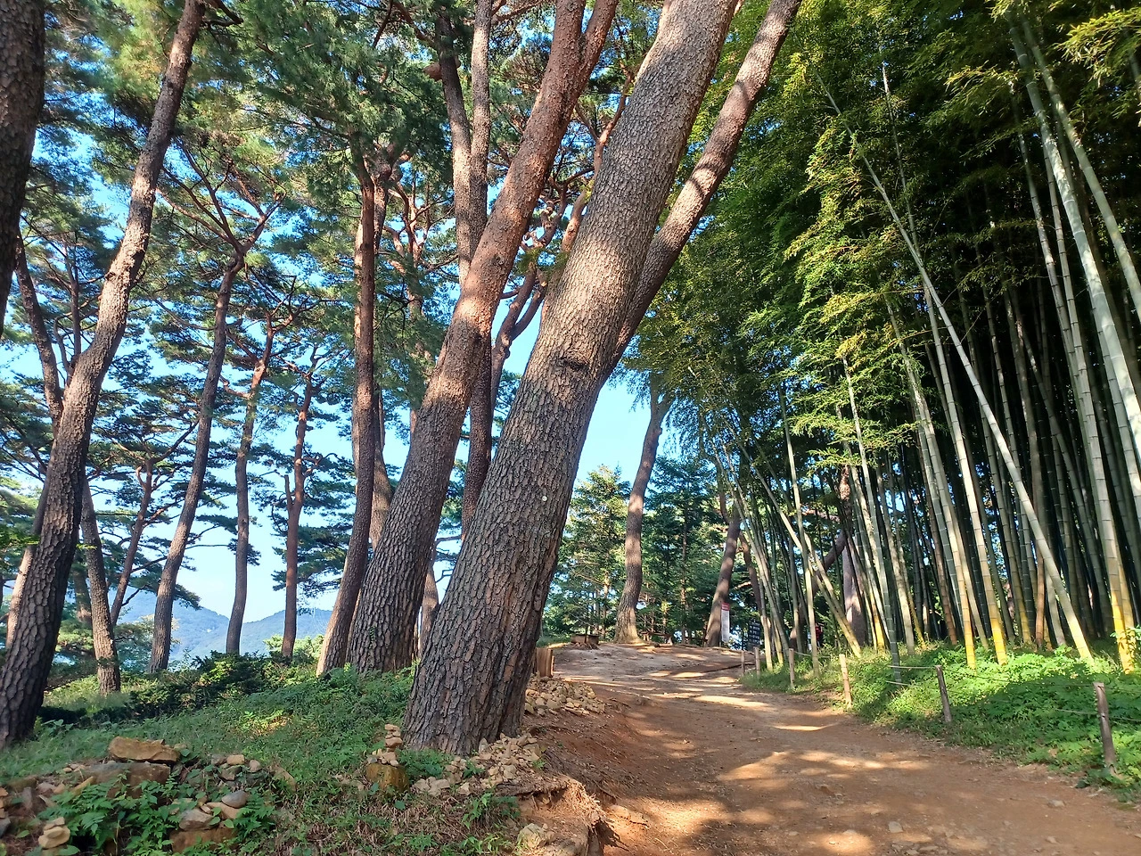 편백숲과 소나무 숲, 만평에 이른다는 대숲도 오르내린다.