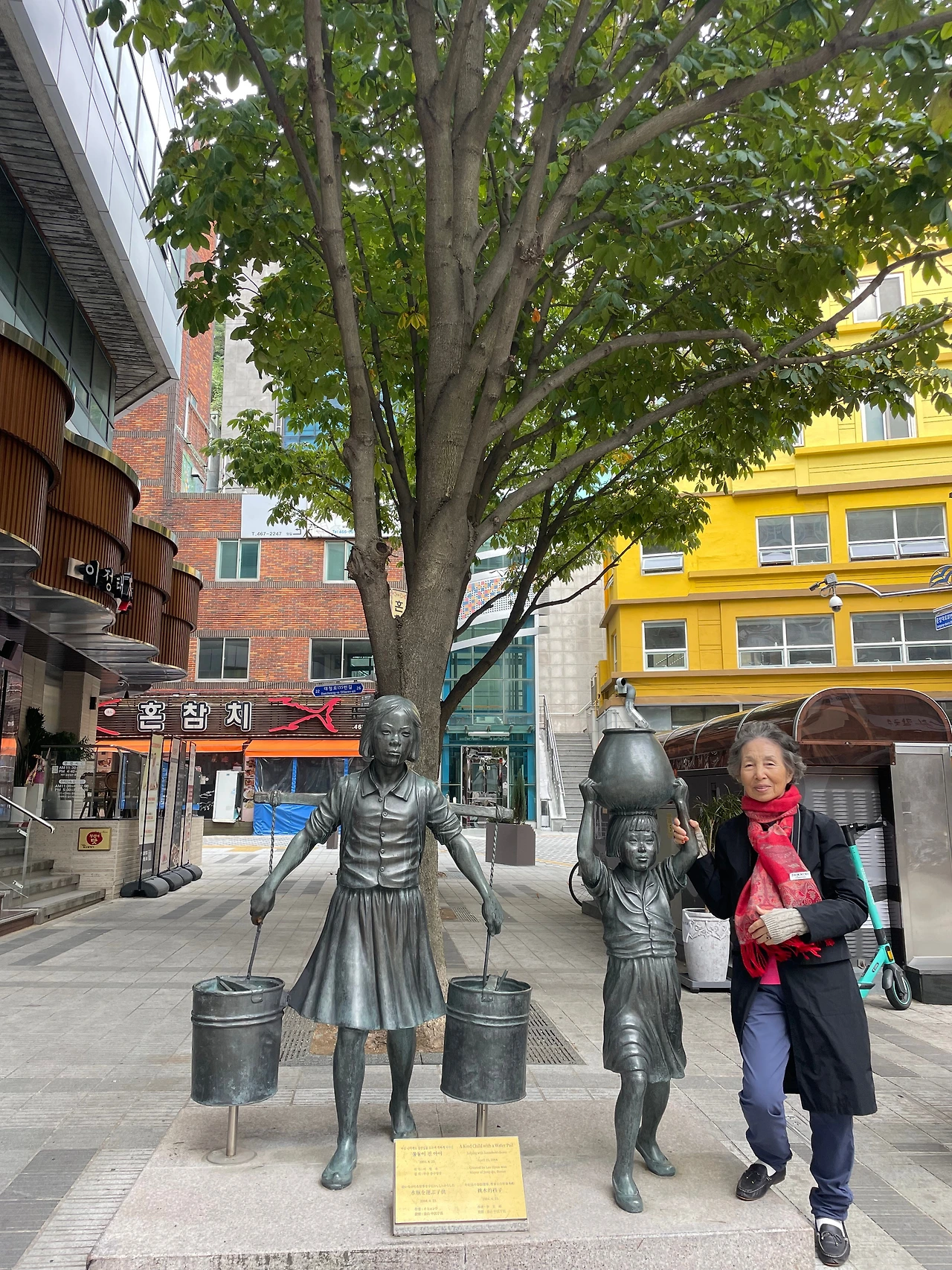 웨스턴 조선을 바라보며 해변을 느릿느릿 걸어와, 아이들 어릴 때 놀러 와서 물놀이도 하고 게도 잡던 인어상을 내려다보며 동백섬 둘레길을 산책했다.
