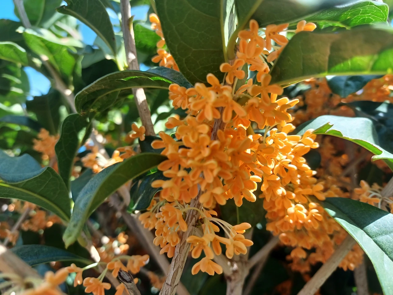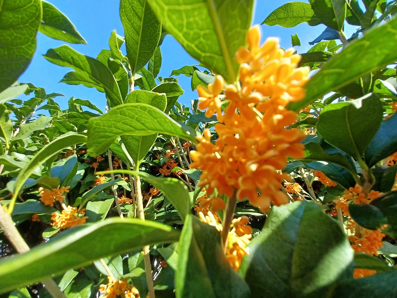 아니나 다를까, 금목서 황금색 자잘한 꽃잎마디에서 매혹적인 맑은 향을 하늘가로 청정히 풀어내고 있었다.